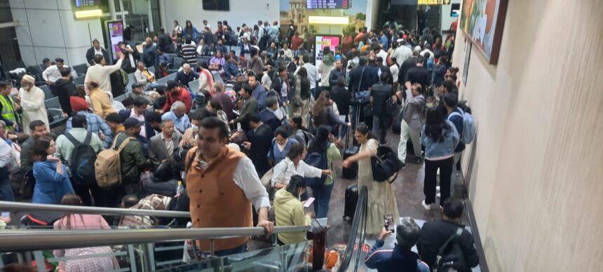 लगातार बिगड़ रहा सिस्टम : एक झटके में 10 फ्लाइट्स रद्द, इंदौर एयरपोर्ट पर यात्रियों की भीड़ और हंगामा