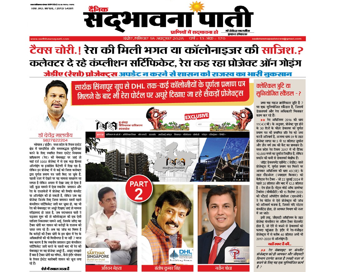 टैक्स चोरी.! रेरा की मिलीभगत या कॉलोनीनाइजर की साजिश.? कलेक्टर दे रहे कंप्लीशन सर्टिफिकेट, रेरा कह रहा प्रोजेक्ट ऑन गोइंग