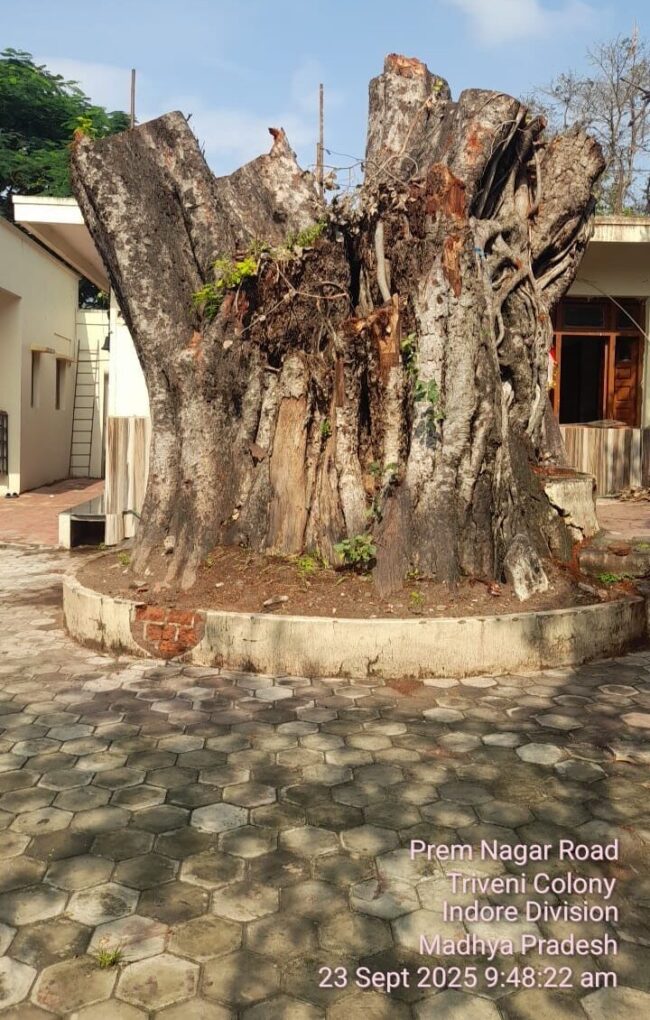 प्राचीन पूजनीय पीपल का पेड़ काटा गया, लकड़ियाँ गायब