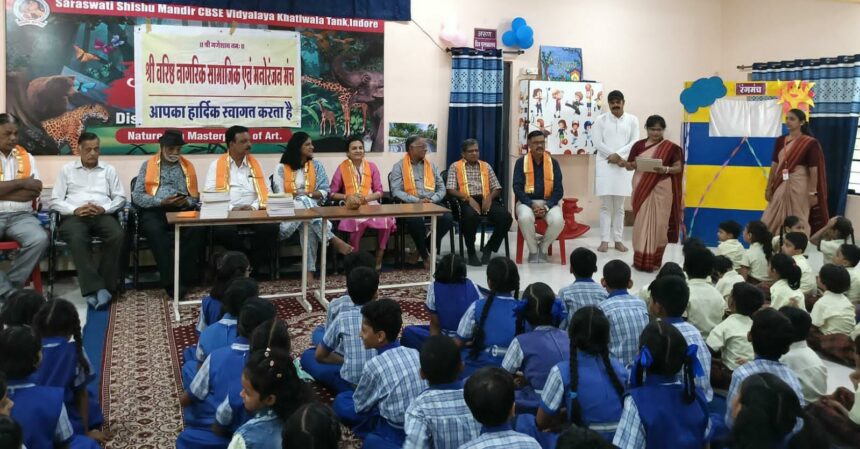 इंदौर। वरिष्ठ नागरिक सामाजिक एवं मनोरंजन क्लब, अन्नपूर्णा क्षेत्र द्वारा सरस्वती विद्या मंदिर, खातीवाला टैंक में कॉपी वितरण कार्यक्रम आयोजित किया गया। इस अवसर पर अग्रवाल समाज के समाजसेवी सुरेश गुप्ता, निधि व्यास तथा मालवा प्रांत सेवा भारती की संयोजिका हीना नीमा विशेष रूप से उपस्थित रहीं।