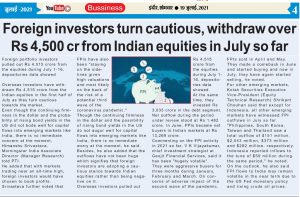 Srivastava further noted that FPIs have also been “staying on the sidelines given high valuations and most likely on the back of the risk of a potential third wave of the coronavirus pandemic.”