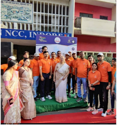 नेहरू स्टेडियम से सुबह 06.30 बजे साइक्लोथॉन शुरू हुई। मुख्य अतिथि श्रीमती सुमित्रा महाजन जी ने हरी झंडी दिखाकर साइक्लोथॉन का शुभारंभ किया।