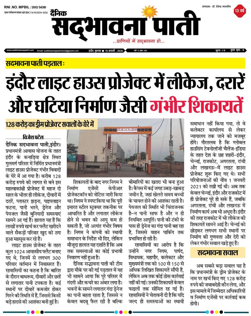 Indore Light House Project – इंदौर के 128 करोड़ के “लाइट हाउस प्रोजेक्ट” की खुली पोल, कई शिकायतें, प्रशासन मौन