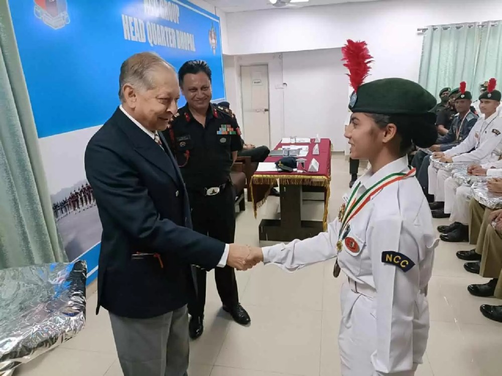 भोपाल । नई दिल्ली में रिपब्लिक डे कैंप 2022 में भोपाल ग्रुप का नाम रोशन कर लौटे, कैडेट्स का एनसीसी मुख्यालय में सम्मान किया गया। एवीएसएम, पीवीएसएम, वायएसएम (रिटायर्ड) लेफ्टिनेंट जनरल मिलन नायडू ने सभी 16 कैडेट्स को मेडल और पुरस्कार देकर गौरवान्वित किया। उन्होंने डीजी एनसीसी प्रशस्ति-पत्र से सम्मानित 3 कैडेट्स को भी प्रोत्साहित किया।