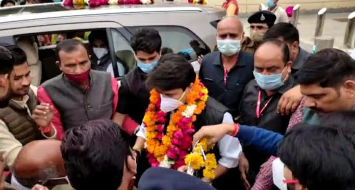 Mp News. केंद्रीय नागरिक उड्डयन मंत्री ज्योतिरादित्य सिंधिया मंगलवार को ग्वालियर पहुंचे। वे एयरपोर्ट से सीधे शिवपुरी निकल गए।