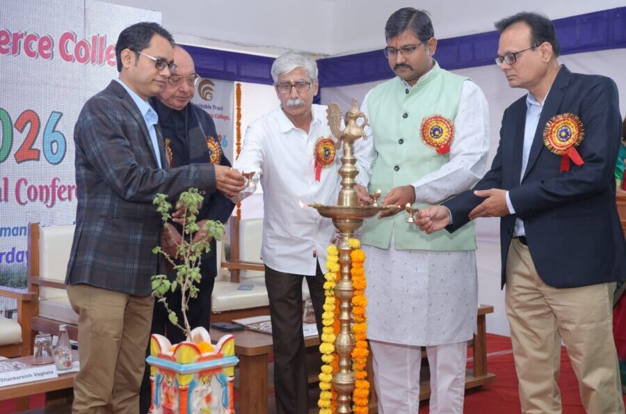 સંસ્થાના આચાર્ય ડૉ. આશિષ જનકરાય દવેએ પોતાના સ્વાગત પ્રવચનમાં કોન્ફરન્સના હેતુઓ અને લક્ષ્યો અંગે માહિતી આપી હતી. આ કોન્ફરન્સના ઉદ્ઘાટન પ્રસંગે ગુજરાતના પૂર્વ મુખ્યમંત્રી અને ગાંધીનગર ચેરિટેબલ ટ્રસ્ટના મેનેજિંગ ટ્રસ્ટી શંકરસિંહ વાઘેલાએ તેમના અધ્યક્ષીય ઉદ્બોધનમાં સર્વસમાવેશક વિકાસ સાધવા સામૂહિક પ્રયત્નોની જરૂરિયાત પર ભાર મૂક્યો હતો. અતિથિવિશેષ ગુજરાત રાજ્ય સંસ્કૃત બોર્ડના ચેરમેન હિમાંજય પાલીવાલે ભારતીય સંસ્કૃતિમાં નિહિત ‘વસુધૈવ કુટુમ્બકમ’ ની ભાવના દ્વારા અને ભારતીય ભાષા-સંસ્કૃતિના જતન, સંવર્ધન થકી સંપોષિત વિકાસ સાધી શકાશે, તેમ જણાવ્યું હતું. બીજ વક્તવ્ય આપતાં સૌરાષ્ટ્ર યુનિવર્સિટીના પ્રોફેસર ડૉ. હિતેશ શુક્લએ દેશની જાણીતી ફેમીલી બ્રાન્ડસની સફળતા અને પડકારો અંગે કેસ સ્ટડી આધારિત વિશ્લેષણ રજૂ કર્યું હતું.