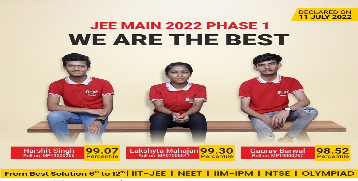 चाह सहज है, क्योकि JEE में उत्कृष्ट परिणाम विद्यार्थी के उज्जवल भविष्य का आगाज़ करते है। इंजीनियरिंग (IIT) के प्रतिष्ठित संस्था में प्रवेश द्वार भी तो इसी परिणाम से खुलते है। सफलता कोई रहस्य नहीं है, यह पूरी तैयारी विद्यार्थी की कड़ी मेहनत और लगातार संघर्ष का परिणाम है। JEE Exam में सफलता का अतिमहत्वपूर्ण बिंदु है उचित समय पर सही संस्थान का चुनाव करना जो अभिभावक का दायित्व है। Best Solution में विद्यार्थियों के परिणाम श्रेष्ठ बनाने के लिए, प्रत्येक विद्यार्थी पर एक परियोजना के तहत काम किया जाता है जहाँ विद्यार्थी की प्रतिदिन सुबह १०:०० से शाम ८:०० तक के समय को चार भाग मे विभाजित किया जाता है Class lecture | Self Study | Test |DCS व एक ऐसा माहौल प्रदान किया जाता है जो विद्यार्थियों को उनका श्रेष्ठ परिश्रम करने के लिए प्रेरित करता है । शिक्षको और विद्यार्थीओ की कड़ी मेहनत का रंग विद्यार्थीओ के परिणामो में नजर आता है।