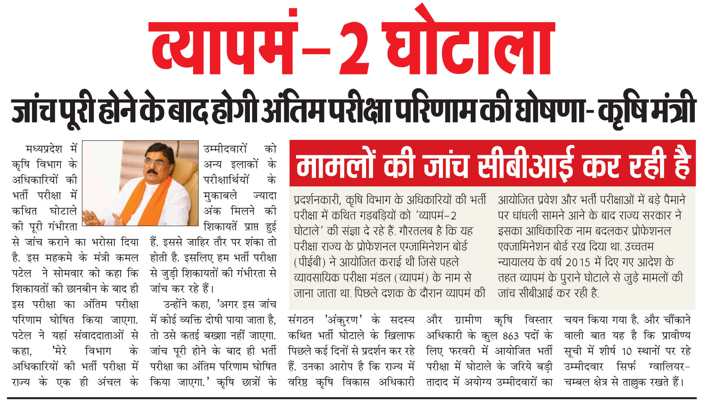 व्यापमं-2 घोटाला: जांच पूरी होने के बाद होगी अंतिम परीक्षा परिणाम की घोषणा- कृषि मंत्री